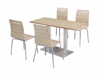 四人位木紋色自助快餐桌椅