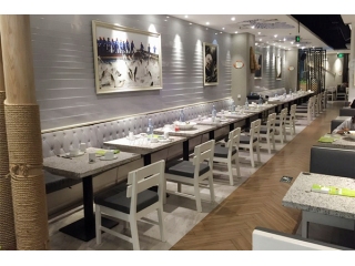 靠墻餐廳卡座餐桌椅實(shí)拍圖