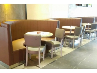 弧形沙發(fā)和圓餐桌椅子組合